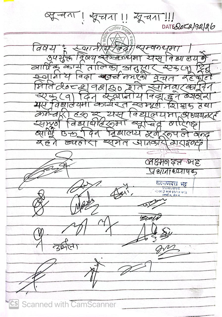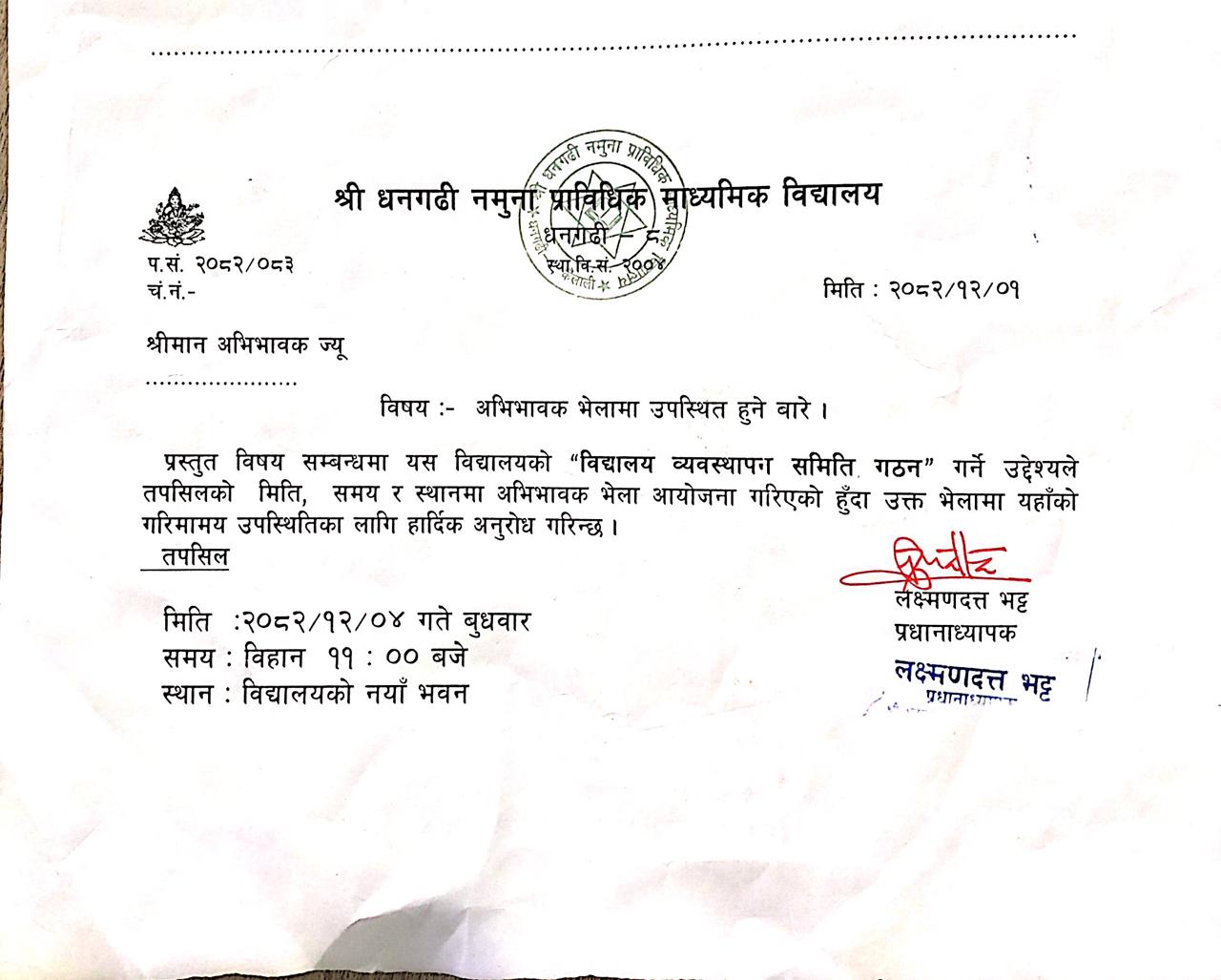 विद्यालय व्यवस्थापन समिति गठन गर्ने बारे अभिभावक भेला हुने सम्वन्धि अत्यन्त जरुरी सूचना ।
