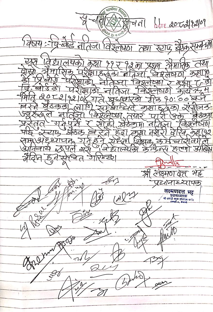 प्रि–वोर्ड नतिजा विश्लेषण तथा स्टाफ बैठक सम्वन्धमा सूचना