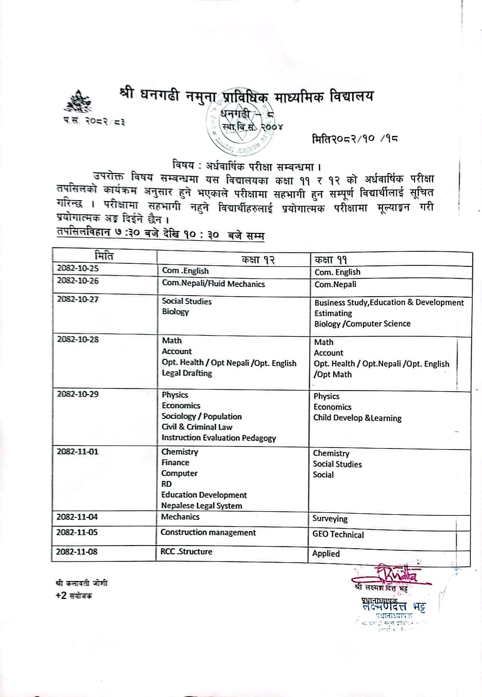 समय सारणी वार्षिक परीक्षा २०८२ को कक्षा १ देखि कक्षा ७ सम्म परीक्षा हुने समय तालिका